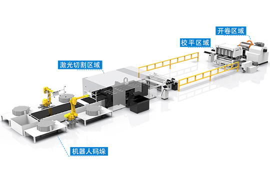 3016A 激光落料生產線,是繼開卷剪切落料、沖壓落料后的新型一站式金屬板材落料生產方案,以多臺并行工作的設備為基準,持續輸送、連續切割、全自動碼垛的過程,以全自動操作詮釋智能高效生產之道,大大提高汽車零部件制造廠家的訂單交付能力。
